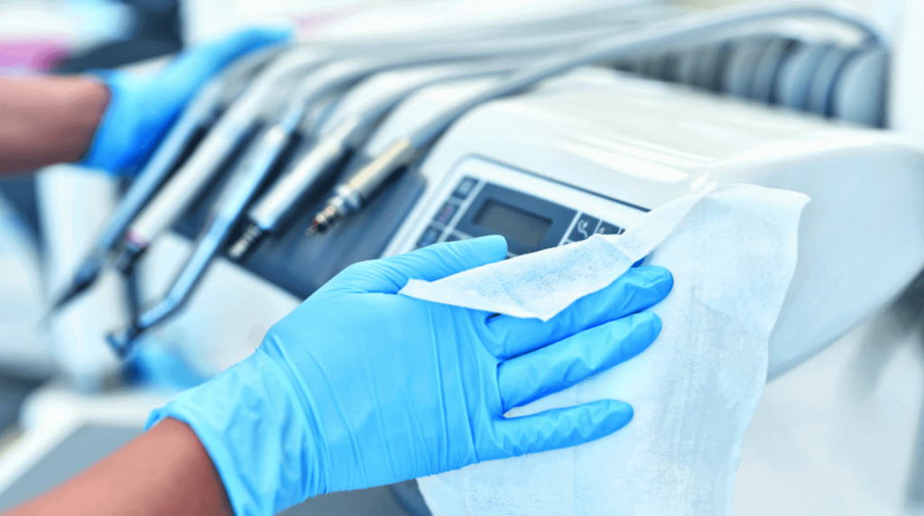 Procédure de nettoyage et de désinfection de la salle de soins entre chaque patient – Marhaba Dental Center